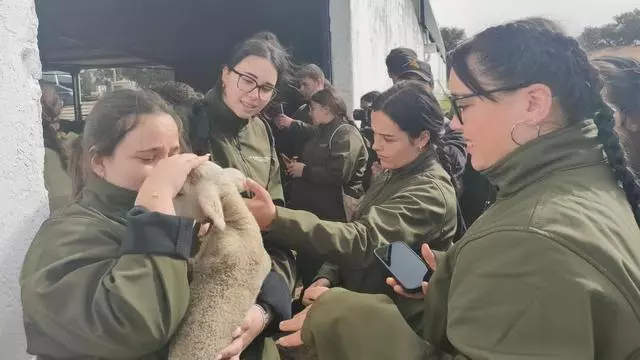 Durante toda la mañana, 72 alumnos de los ciclos formativos de grado medio en Producción Agropecuaria, grado superior en Ganadería y Asistencia y Sanidad Animal, y grado superior en Gestión Forestal y del Medio Natural han recorrido la finca para familiarizarse con su distribución y conocer de primera mano las principales operaciones que se desarrollan en ella, así como gestión del ganado, incluido el sistema de planificación de partos del ovino con prácticas para asegurar la eficacia y el bienestar animal, además de la incorporación de tecnología como la utilización de collares electrónicos para el control del pastoreo, lo que permite un monitoreo detallado de la salud y el comportamiento del ganado.