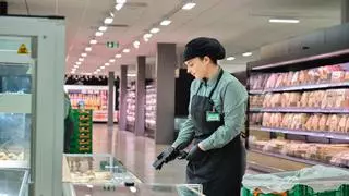 Una empleada de Mercadona repasa la mercancía